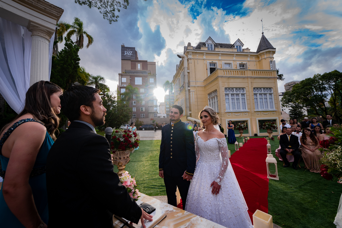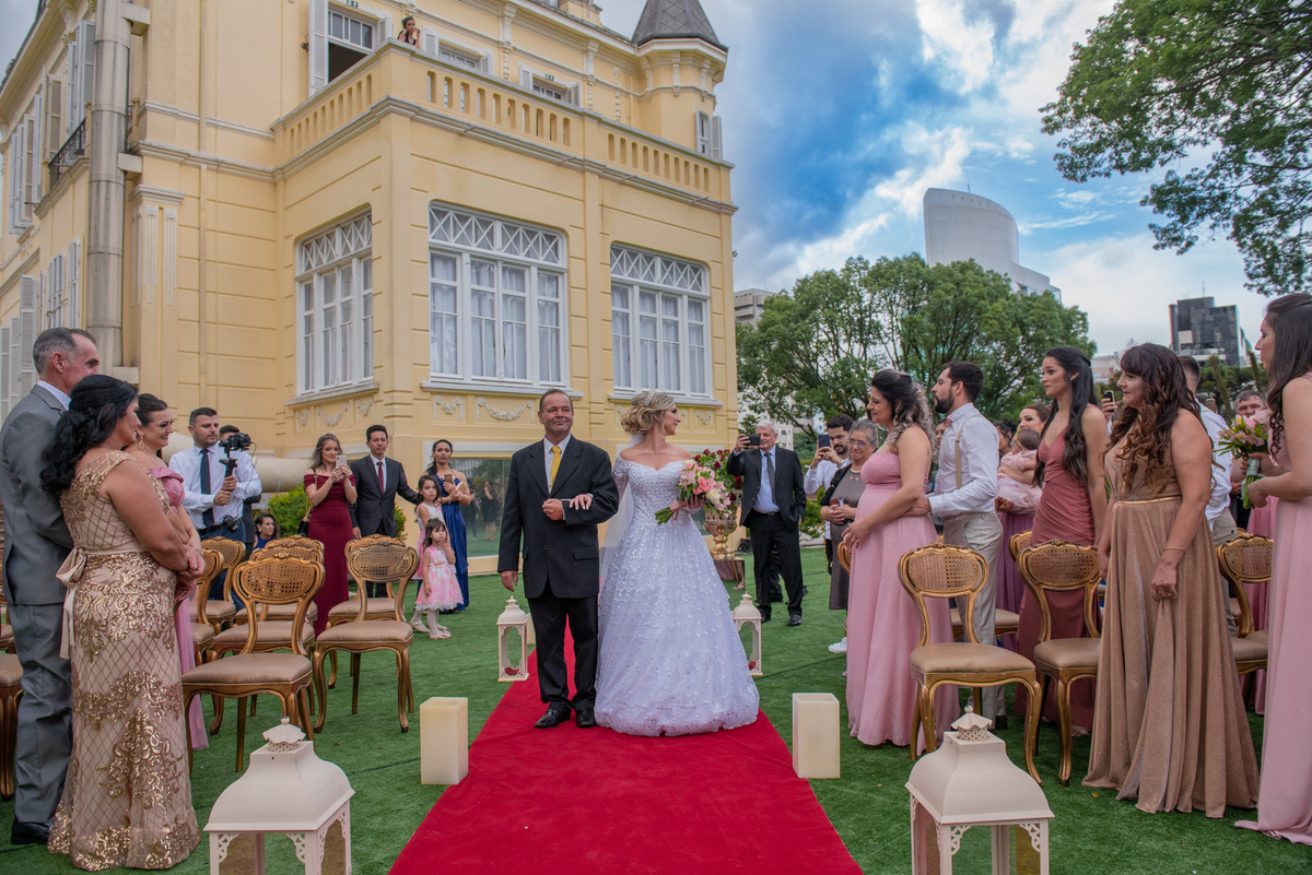 Assim podemos descrever este evento lindo, cheio de emoções e realizações. O Castelo do Batel recebeu uma noiva que sonhava com seu príncipe encantado e tudo foi perfeito